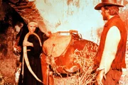 Der wortkarge Söldner Hogan (Clint Eastwood, r.) rettet die als Nonne verkleidete Prostituierte Sara (Shirley MacLaine, l.) vor drei Männern, die sie bedrängen. Zwischen beiden entsteht eine tiefe Verbundenheit, die sie von ihrem eigentlichen Plan abbringt ...