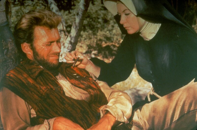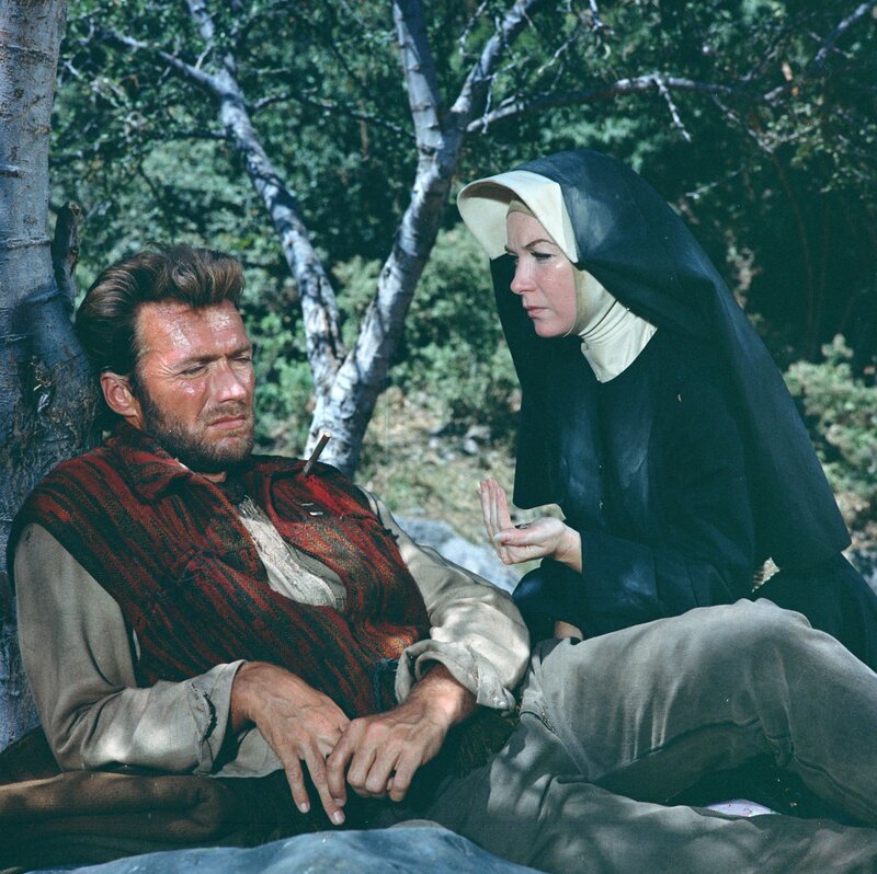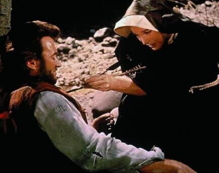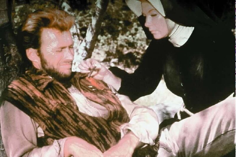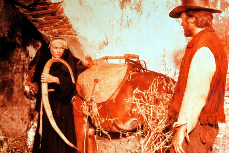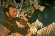 Hogan (Clint Eastwood, l.) lernt die Nonne Sara (Shirley MacLaine, r.) kennen. Beide spüren eine gegenseitige Verbundenheit. Hogan weiß Saras Geheimnis über ihre eigentliche Berufung nicht ...