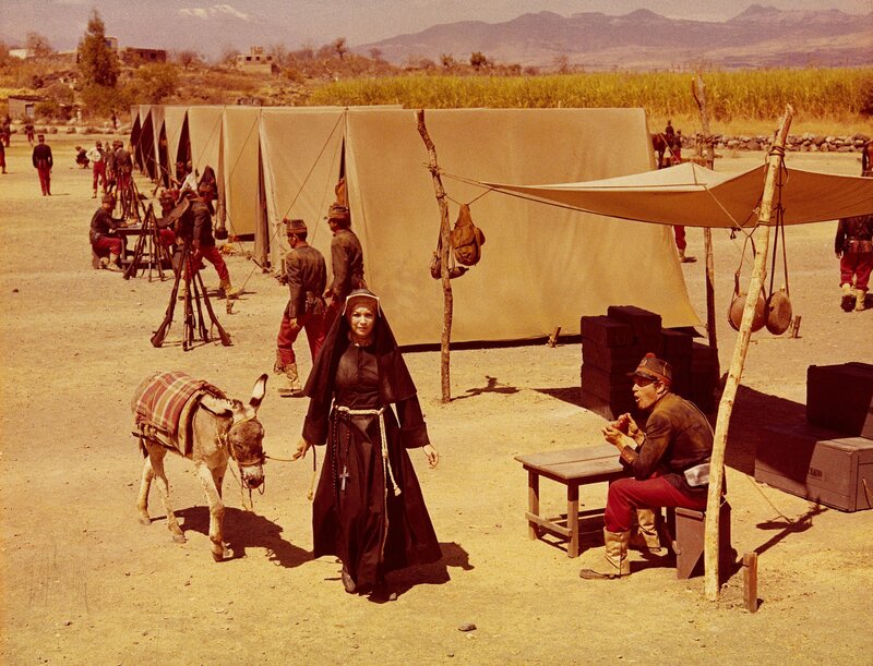 Der amerikanische Söldner Hogan (Clint Eastwood, r.) lernt die als Nonne verkleidete Prostituierte Sara (Shirley MacLaine, l.) kennen. Zwischen ihnen entsteht schnell mehr als nur Freundschaft ...