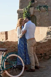Die Holzhandwerkerin Moriah (Rachelle Lefevre, li.) möchte den Leuchtturm in einer französischen Küstenstadt restaurieren. Doch dann trifft sie auf Ben (Luke Macfarlane, re.), der andere Pläne hat.Bild: © Eric Caro / Hallmark Media