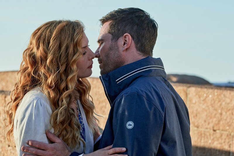 Die Holzhandwerkerin Moriah (Rachelle Lefevre, re.) möchte den Leuchtturm in einer französischen Küstenstadt restaurieren. Doch dann trifft sie auf Ben (Luke Macfarlane, li.), der andere Pläne hat. +++ Die Verwendung des sendungsbezogenen Materials ist nur mit dem Hinweis und Verlinkung auf RTL+ gestattet. +++Bild: © Hallmark Media