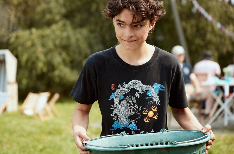 Enes und Martha treffen bei der Schnasselbude aufeinander (Konstantin Riesen, Lotta Herzog)Bild: © SWR/Wüste Medien/O-Young Kwon