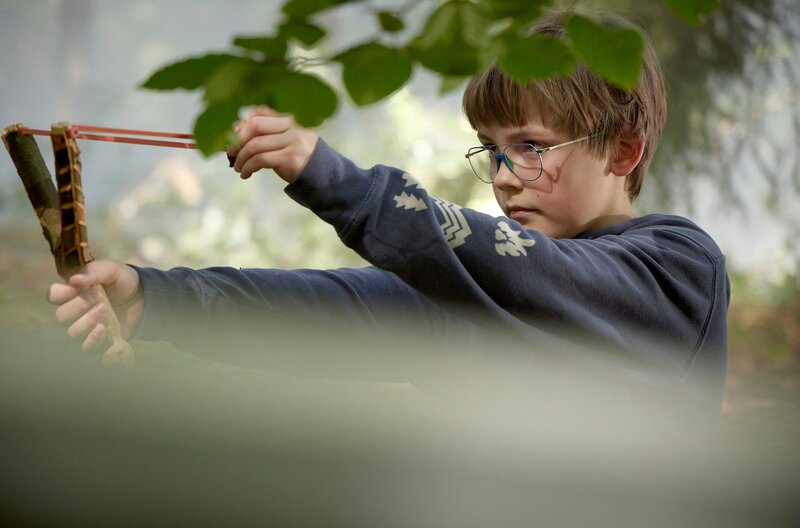 Mikkel zielt mit seiner Zwille (Gregory Richters)Bild: © SWR/Wüste Medien/O-Young Kwon