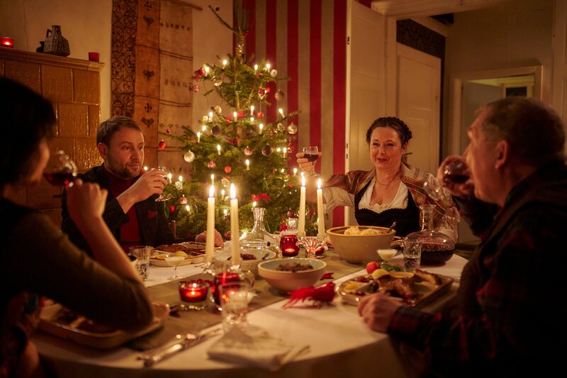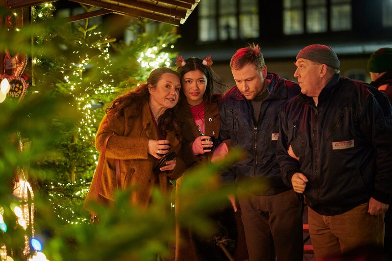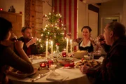 Dass Linh (Nhung Hong, l.), Jan (Max Riemelt, 2.v.l.) und Axel (Dietmar Bär, r.) weit weg von der Heimat zu Heiligabend bei Sofia (Gabriele Völsch, 2.v.r.) stranden und gemeinsam Weihnachten wider Willen feiern, stellt sich als ein großer Glücksfall heraus.Bild: © ZDF und Felix Abraham