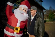 Axel Parschke (Dietmar Bär) hat schlecht geschlafen und lässt seine schlechte Laune am aufblasbaren Weihnachtsmann vor der Tür des Gasthofs aus.Bild: © Felix Abraham / ZDF