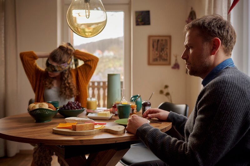 Jenny (Marlene Tanczik) trifft beim gemeinsamen Frühstück am nächsten Morgen eine schlechte Entscheidung und stößt Jan (Max Riemelt) damit vor den Kopf.Bild: © ZDF und Felix Abraham