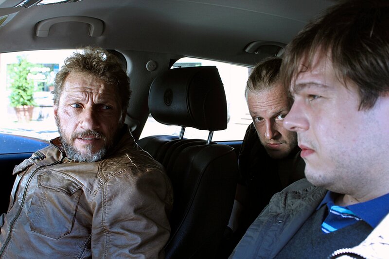 Als Klaus Roth (Richy Müller, li.) sieht, dass Achim Buchert (Martin Butzke, Mitte) einen unbekannten Fahrer (Wojo van Brouwen) mitgebracht hat, würde er die ganze Aktion am liebsten abbrechen.
