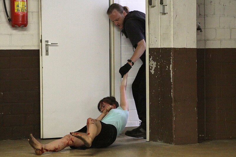 Als Miriam Nohe (Claudia Eisinger) versucht, dem verletzten Achim Buchert (Martin Butzke) zu entfliehen, wendet er Gewalt an.