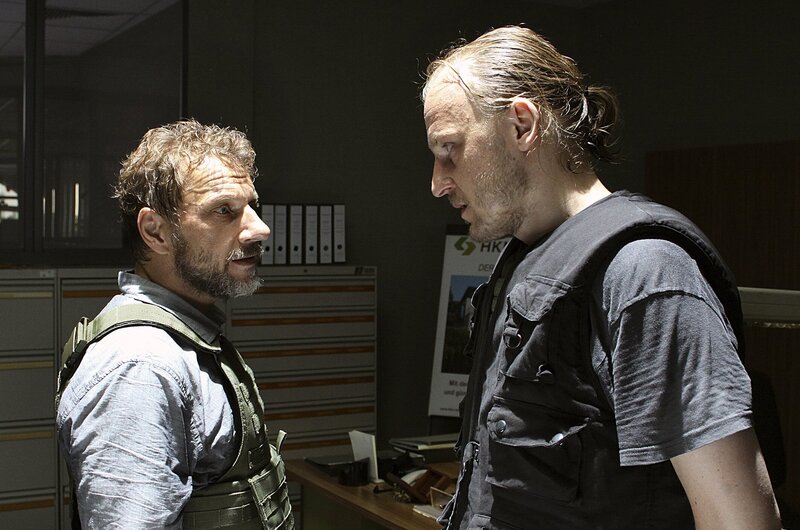 Klaus Roth (Richy Müller, li.) und Achim Buchert (Martin Butzke, re.) wollten eigentlich nur einen Geldtransport überfallen und sofort danach verschwinden. Dieser Plan ist schiefgegangen. Aber wie aus dieser Situation wieder herauskommen?