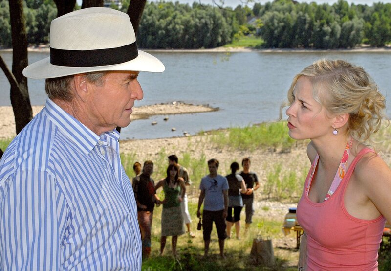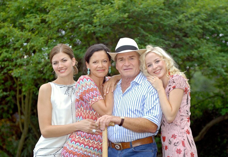 Balthasar Pelkofer (Fritz Wepper) hat sich in Annette Eggers (Angela Roy, 2.v.li.) verliebt, die Mutter seiner Mieterin Claire Mortensen (Nina Bott, li.), die mit ihrem Mann Guido in seinen Bungalow eingezogen ist. Nun hat Balthasar mehr Zeit für seine Tochter Maxi (Jasmin Schwiers).Bild: © ZDF und ARD Degeto/Martin Menke