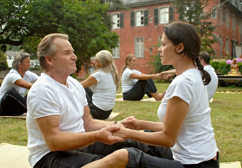 Balthasar (Fritz Wepper) hat Annette (Angela Roy) zu einem Wochenende in einem luxuriösen Wellness-Hotel eingeladen, doch Meditationskurse sind für beide gewöhnungsbedürftig.Bild: © ARD Degeto/Martin Menke