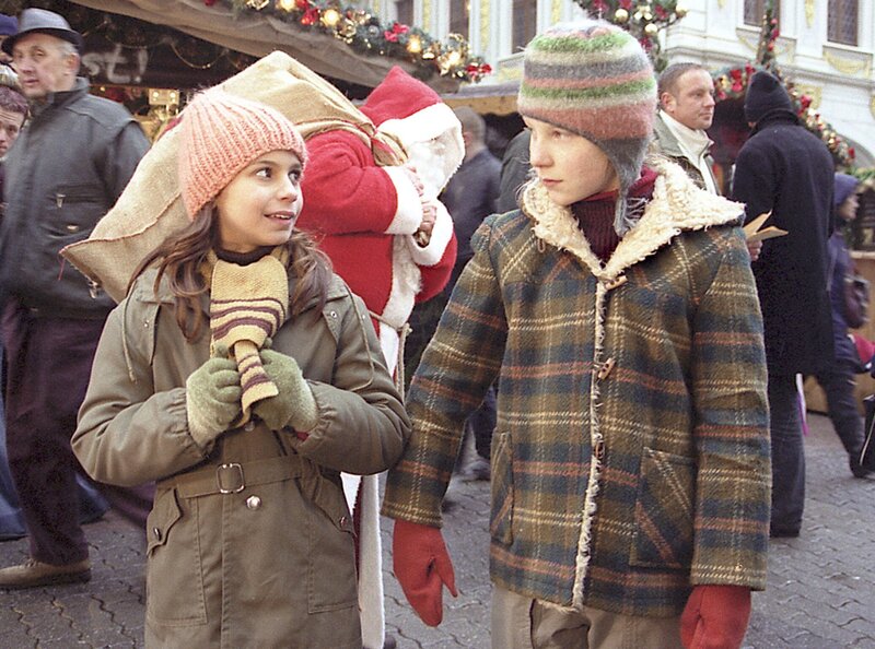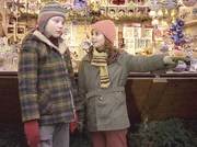 Das Waisenkind Klette (Vespa Vasic, links) sucht mit ihrer Freundin Jessica (Isabell Bongard) auf dem Leipziger Weihnachtsmarkt nach geeigneten Eltern.Bild: © MDR/Steffen Junghans