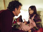 Das kleine Waisenmädchen (Vespa Vasic) hat sich den eingefleischten und ahnungslosen Junggesellen Oliver (Heio von Stetten) als Vater ausgesucht.Bild: © MDR/Steffen Junghans