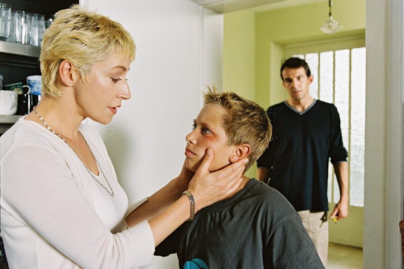 Ina (Tatjana Blacher, l.) versucht ihren Sohn Philip (Matze Kick, M.) zu trösten, der unter den Hänseleien und Handgreiflichkeiten seiner Mitschüler leidet. Jeder weiß inzwischen, dass sein Vater (Hans Werner Meyer, r.) ein Verhältnis mit einem Mann hat ...