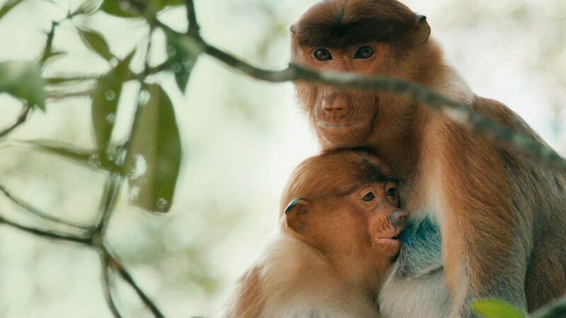 Nasenaffe mit Jungtier +++ Die Verwendung des sendungsbezogenen Materials ist nur mit dem Hinweis und Verlinkung auf RTL+ gestattet. +++Bild: © RTL / (c) Terra Incognita Docs
