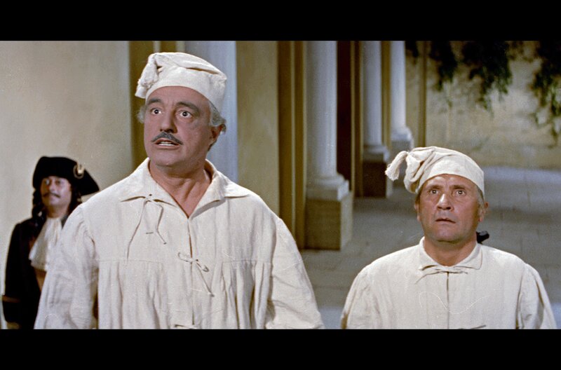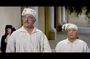 Der kluge Sekretär Gardunia (Paolo Stoppa, re.) schlägt dem Gouverneur (Vittorio De Sica, li.) einen Plan vor, um eine Nacht mit Carmela zu verbringen.
