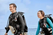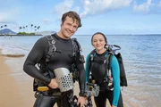 Während der Vorbereitung der Hochzeit ihrer Schwester verliert Addy (Hunter King, li.) den Ring ihrer Großmutter in den Gewässern von Hawaii. Um ihn wiederzufinden, bittet sie den Taucher Jack (Beau Mirchoff, re.) um Hilfe und verliebt sich in ihn.Bild: © Zack Dougan / ©Hallmark Media