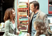 In einem Antiquariat treffen Klaus (Michael Roll) und Judith (Christina Plate, li.) sich unversehens wieder. Klaus' Tochter Anna (Maria Ehrich) streitet sich mit Judith um ein Buch.Bild: © ARD Degeto/Britta Krehl