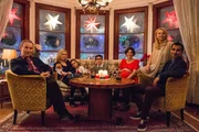 Teile der Familie am runden Tisch (v.l.): Millitiadis (Michalis Koutsogiannakis), Sofia (Frida Beckman), Edda (Paulina Pizarro Swartling), Alex (Neo Siambalis), Cissi (Rakel Wärmländer), Carina (Helena Bergström) und Rami (Peshang Rad)Bild: © Alexander Kallas