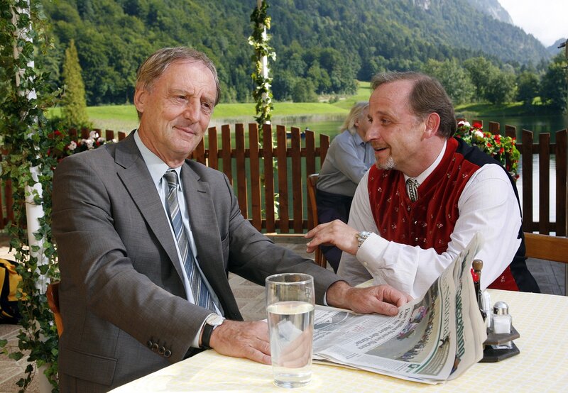 Der strenge Steuerprüfer Bernhard Maiwald (Günther Maria Halmer) lässt sich vom gerissenen Dorfwirt Georg Ametsrieder (Alexander Held, re.) nicht einwickeln.