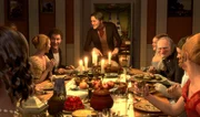 Nach alldem was Ebenezer Scrooge (Jim Carrey, 3.v.r.) erlebt hat - kann er doch noch ein glückliches Weihnachtsfest mit seinem Neffen Fred (Colin Firth, M.) verbringen ...Bild: © TVP