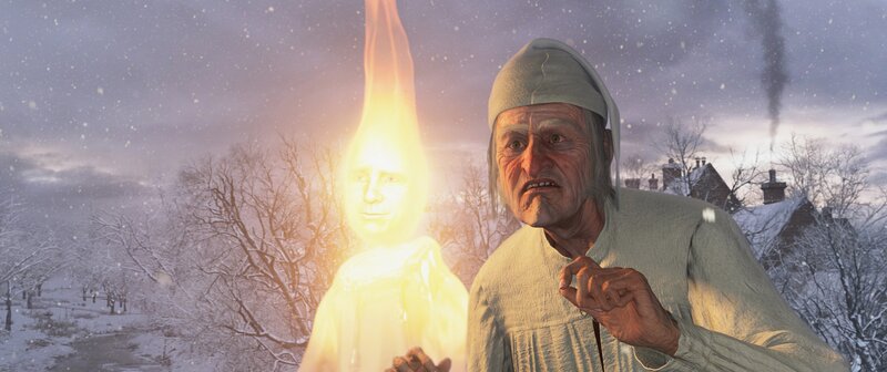 Ebenezer Scrooge (Jim Carrey) ist ein eiskalter, geiziger Geschäftsmann. Auch das anstehende Weihnachtsfest ist für ihn eher eine Qual. Doch an Heiligabend erscheint ihm sein alter, bereits verstorbener Freund Marley und prophezeit ihm eine schreckliche Zukunft, wenn er weiterlebt wie bisher ...Bild: © ImageMovers Digital LLC.