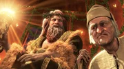 JIM CARREY as The Ghost of Christmas Present (left), and Ebenezer Scrooge (right).Bild: © The Walt Disney Company Europe / MPP