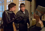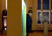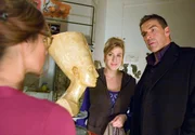 Die Museumsdirektorin (Barbara Schnitzler) teilt Kommissar Leibniz (Walter Kreye, Mitte) und seinem Assistenten Schelling (Michael Pink) mit, dass jemand ins Museum eingedrungen ist. Doch niemand weiß, wie er unbemerkt hinein und wieder herauskommen konnte.