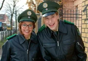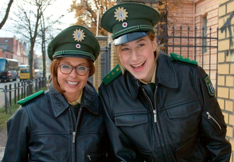 Julia (Christina Plate, link) und ihre Kollegin Teresa (Helene Grass) haben sich als Polizistinnen verkleidet, um den Hehler hereinzulegen.