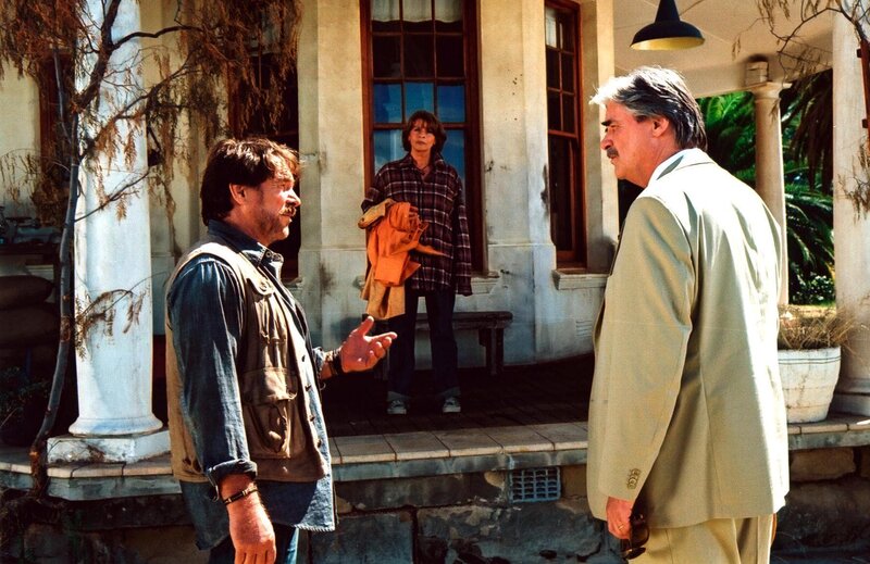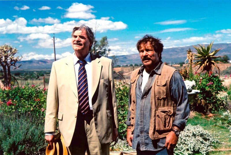 Straußenfarmer John (Götz George,l) kümmert sich um Emma (Senat Berger,r), die er für kurze Zeit auf seiner Straußenfarm aufgenommen hat.Bild: © ZDF und Christine Nachmann