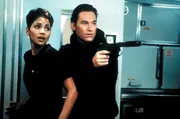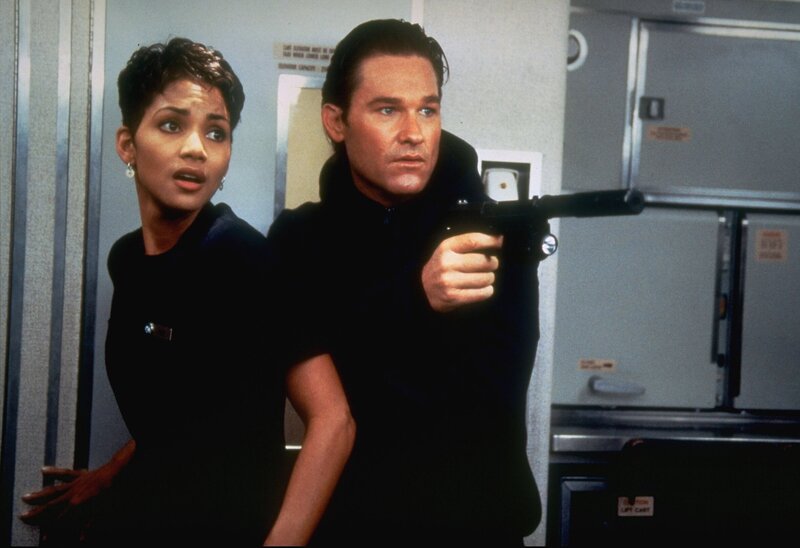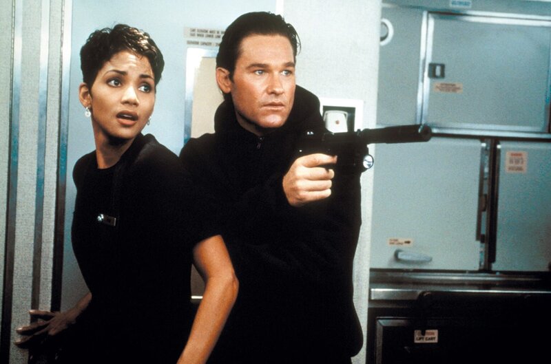 Noch ist die Bombe nicht entschärft, da wagt sich Grant (Kurt Russell) mit Hilfe der Flugbegleiterin Jean (Halle Berry) mitten unter die Terroristen, um den vermutlichen Bombenzünder zu eliminieren.Bild: © VOX