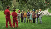 Ella (Freja Teijonsalo, 2.R., 2.v.li.) und ihre Freunde wollen ihre gemütliche alte Schule behalten. Zusammen mit ihrem Lehrer entwickklen sie einen Plan, wie sie den Bau der neuen Schule verhindern können.Bild: © KiKA/Snapper Films