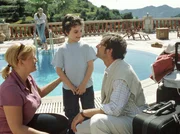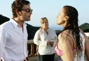 Unter der griechischen Sonne kommt es zu Spannungen zwischen Tobias (Heikko Deutschmann) und Marion (Sonja Kirchberger, rechts), die aufgrund einer Doppelbelegung im selben Ferienhaus untergekommen sind. Nora (Petra Kleinert, Mitte) ist ratlos.Bild: © MDR/Degeto/Dieter Jaeger