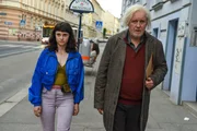 Die angehende Schutzengelin Mira (Maresi Riegner) folgt ihrem Ausbildner Oskar (Harald Krassnitzer) zu seiner Wiener Wohnung.Bild: © Hubert Mican / BR, ORF, Cult Film GmbH