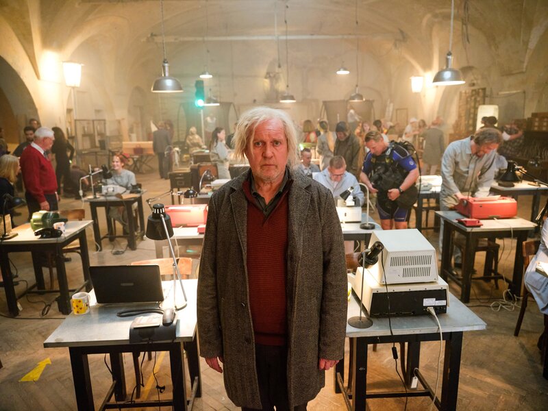 Oskar (Harald Krassnitzer) trifft zum Rapport in der Engelszentrale ein.Bild: © Fabio Eppensteiner / BR, ORF, Cult Film GmbH
