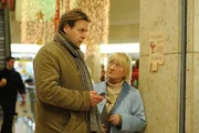 Obwohl Aushilfsengel Frau Kosslowski (Carmen-Maja Antoni, r.) alles versucht, um Hans Krüger (Steffen Münster, l.) zu helfen, nicht so mutlos in die Zukunft zu blicken, scheitert sie. Da greift der arbeitslose Familienvater zu einem drastischen Mittel ...Bild: © SAT.1 / Hardy Spitz