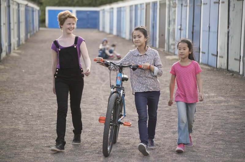 Als Linhs Mutter nach Vietnam reisen muss, weiß Linh schon, was auf sie zukommt. Es ist nicht das erste Mal, dass sie mit ihrer kleinen Schwester Tien allein in Deutschland bleibt. Sie wird die Zeit schon überstehen - wie immer, ohne dass Schule oder Jugendamt etwas bemerken. Doch diesmal wird alles viel schwieriger. Als Linhs Mutter nach Vietnam reisen muss, weiß Linh schon, was auf sie zukommt. Es ist nicht das erste Mal, dass sie mit ihrer kleinen Schwester Tien allein in Deutschland bleibt. Sie muss den Alltag schaukeln, im Imbiss der Familie helfen und dafür sorgen, dass Tien nicht über die Stränge schlägt - und dass die Abwesenheit der Mutter niemandem auffällt. Im Notfall kann sie sich an die vietnamesische Community wenden. Sie wird die Zeit schon überstehen - wie immer, ohne dass Schule oder Jugendamt etwas bemerken. Doch diesmal wird alles viel schwieriger. Denn die selbsternannte Spionin Pauline, die vom Hochhaus gegenüber das ganze Viertel beobachtet, hat die Thuys im Visier. Eines Abends lauert Pauline Linh auf. Sie hat das Geheimnis der Thuys entdeckt und droht, es zu enthüllen. Erst verlangt sie Geld dafür, dann ändert der wilde Rotschopf die Forderung: Sie will an Linhs "aufregendem Leben" teilhaben und alles tun dürfen, was Linh darf. Linh versteht nicht: Sie darf nichts - sie muss. Einkaufen, Kochen, Aufräumen. Pauline ahnt nicht, wie anstrengend Linhs Leben als Alleinverantwortliche ist! Doch Pauline ist völlig aufgedreht: Sieht Linh gar nicht, was für Möglichkeiten sie hat?! Nachdem Pauline in ihr Leben geplatzt ist, wird der Alltag der Thuys turbulent - und gefährlich. Nicht nur, weil Pauline sich in die vietnamesische Community drängt und Linhs Routine auf den Kopf stellt. Sondern auch, weil die kleine Tien immer unkontrollierbarer wird, je mehr Pauline und Linh sich annähern. Denn als Pauline begreift, unter welchem Druck Linh steht, ändert sich ihre Haltung. Sie hilft Linh nicht nur bei der Vertuschung ihres Geheimnisses und schwindelt sie aus brenzligen Situationen heraus, sondern verwandelt Linhs nervenzehrenden Alltag in etwas Schönes und Aufregendes. Sie unterstützt Linh darin, ihre erste Liebe zu erleben und lässt die Imbissbude der Thuys zu einer magischen Schaltstelle für das ganze Viertel werden. Aus der anfänglichen Erpressung wird eine außergewöhnliche Freundschaft. Doch die kleine Tien, die ohnehin sehr unter der Abwesenheit der Mutter leidet, fühlt sich nun, da Linh zum ersten Mal eine Freundin hat, gänzlich verlassen. Tien treibt es immer wilder, schwänzt die Schule und klaut sogar. Das Jugendamt wird auf die beiden vietnamesischen Mädchen aufmerksam. Linh droht alles über den Kopf zu wachsen und auch Paulines Hilfe wird sie bald nicht mehr vor einer Entdeckung bewahren können. Doch letztlich ist es gar nicht Tien, die das Fass zum Überlaufen bringt, sondern Linh selbst - und die Situation spitzt sich bedrohlich zu. "Ente gut! Mädchen allein zu Haus" ist der zweite Film der Initiative "Der besondere Kinderfilm". Seit 2013 setzt sich diese für die Entwicklung und Förderung von Kinderfilmen ein, die nicht auf einer bereits bestehenden Vorlage oder Marke basieren, sondern mit ganz neuen Stoffen aus der Lebenswelt von Kindern erzählen. Ziel ist es, dem Kinderfilm in Deutschland mehr Präsenz und Gewicht zu verleihen.