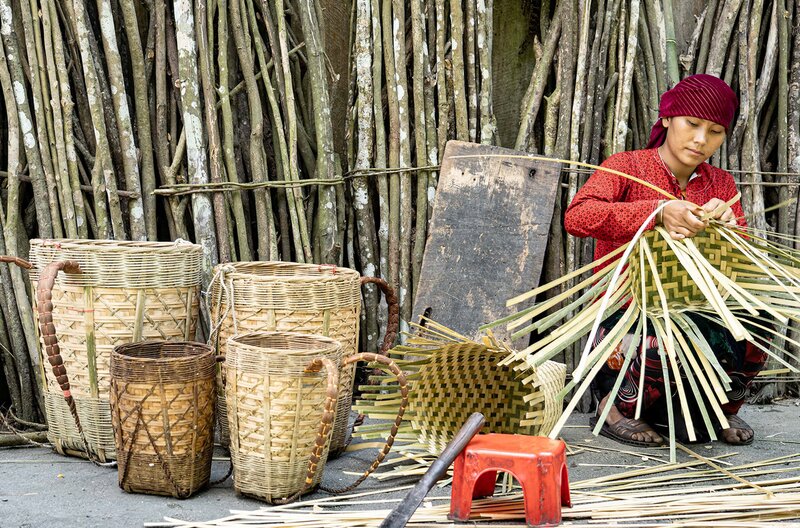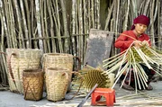 Die Dorfbewohner von Lung Hau flechten Körbe aus Bambus. Die verholzten Halme sind äußerst stabil und zugleich flexibel.Bild: © Thomas Henk Henkel