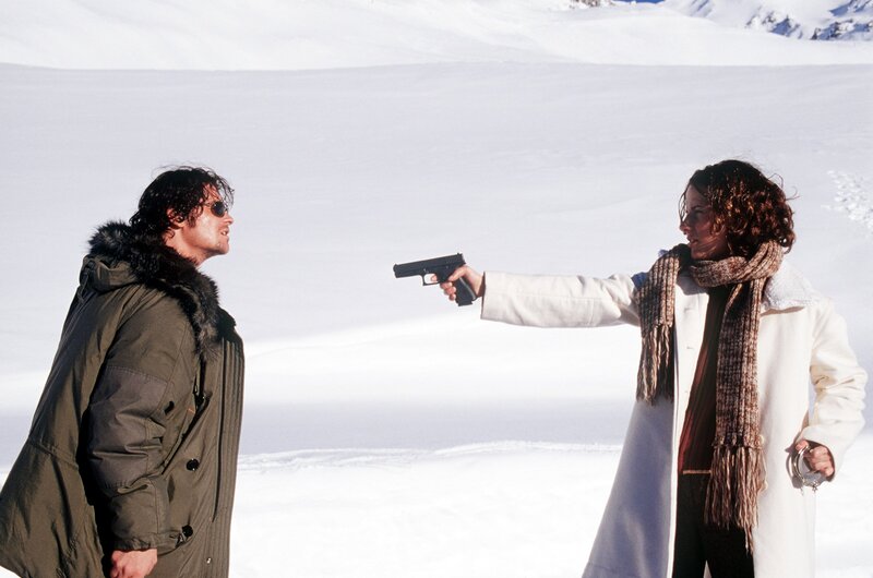"Entscheidung im Eis - Eine Frau jagt den Mörder", In einer idyllischen Stadt in den Bergen reiht sich ein blutiges Verbrechen an das nächste. Sechs Frauen sind einem skrupellosen Mörder zum Opfer gefallen. Die Polizistin Leah Sanders ist dem mutmaßlichen Täter Michael Bose dicht auf den Fersen. Dieser wurde zwar am Tatort direkt neben dem letzten Opfer festgenommen, doch gelang es ihm zu fliehen. Die Verfolgungsjagd führt beide in die Berge bis zu einer Hütte. Und plötzlich geschieht ein tragischer Unfall mit weitreichenden Folgen: Ein Warnschuss aus Leahs Pistole löst eine Lawine aus. Sie verschüttet die Polizistin gemeinsam mit dem Tatverdächtigen in der Hütte. Doch in diesem Wochenenddomizil sind bereits zwei Erholung Suchende: Dr. Jan Meinert und seine Freundin Maria Sebach.Im Bild (v.li.): Eva Herzig (Maria Sebach), Claudia Michelsen (Leah Sanders). SENDUNG: 3sat - SO - 28.07.2019 - 23:35 UHR. - Veroeffentlichung fuer Pressezwecke honorarfrei ausschliesslich im Zusammenhang mit oben genannter Sendung oder Veranstaltung des ORF bei Urhebernennung.Bild: © ORF