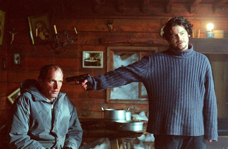 "Entscheidung im Eis - Eine Frau jagt den Mörder", In einer idyllischen Stadt in den Bergen reiht sich ein blutiges Verbrechen an das nächste. Sechs Frauen sind einem skrupellosen Mörder zum Opfer gefallen. Die Polizistin Leah Sanders ist dem mutmaßlichen Täter Michael Bose dicht auf den Fersen. Dieser wurde zwar am Tatort direkt neben dem letzten Opfer festgenommen, doch gelang es ihm zu fliehen. Die Verfolgungsjagd führt beide in die Berge bis zu einer Hütte. Und plötzlich geschieht ein tragischer Unfall mit weitreichenden Folgen: Ein Warnschuss aus Leahs Pistole löst eine Lawine aus. Sie verschüttet die Polizistin gemeinsam mit dem Tatverdächtigen in der Hütte. Doch in diesem Wochenenddomizil sind bereits zwei Erholung Suchende: Dr. Jan Meinert und seine Freundin Maria Sebach.Im Bild (v.li.): Herbert Knaup (Jan Meinert), Fritz Karl (Martin Bose). SENDUNG: 3sat - SO - 28.07.2019 - 23:35 UHR. - Veroeffentlichung fuer Pressezwecke honorarfrei ausschliesslich im Zusammenhang mit oben genannter Sendung oder Veranstaltung des ORF bei Urhebernennung.Bild: © ORF (FS1/FS2) / ORF2
