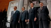Ein historisches Gipfeltreffen inmitten des Kalten Krieges: Die KSZE veränderte letztlich die Welt. Anhand von Archivmaterial und nun freigegebenen Gesprächsprotokollen erweckt der Dokumentarfilm das politische Schachspiel von 1975 wieder zum Leben. Humorvolle und scharfsinnige Beobachtung der langsam mahlenden Mühlen der Diplomatie. Erzählt von Bjarne Mädel. - Henry Kissinger, Leonid Breschnew, Präsident Gerald Ford und Andrei Gromyko vor der US-Botschaft in Helsinki (30. Juli 1975)Bild: © rbb/David Hume Kennerly/The Gerald Ford Library & Museum