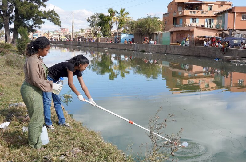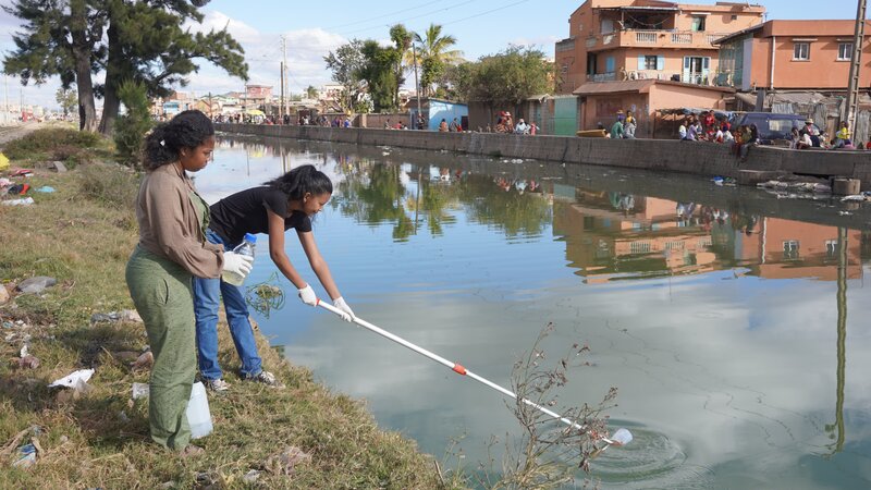 Eine stille Pandemie: Die Labortechnikerinnen Tiavina Lalaina Rasolofoarison (re.) und Olivia Ravalison Marosoa (li.) entnehmen Flusswasser, um es auf antibiotikaresistente Escherichia-coli-Bakterien zu testen.Bild: © Georama TV