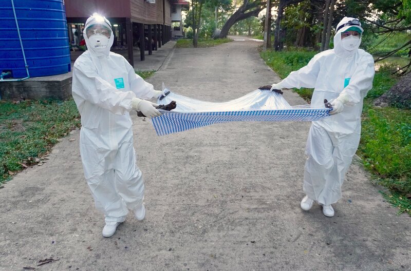 Die Forscherinnen transportieren Kotproben von Fledermäusen, die das gefährliche Nipahvirus tragen.Bild: © Xavier Deleu/Georama TV