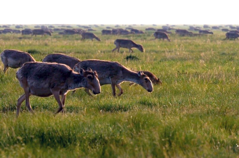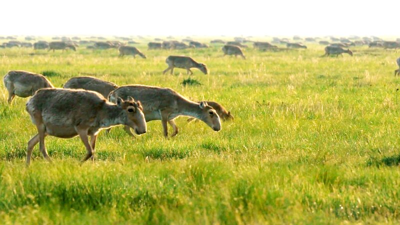 Saigaantilopen kommen nach der Epidemie in der Mongolei wieder zahlreich vor.Bild: © kwanza