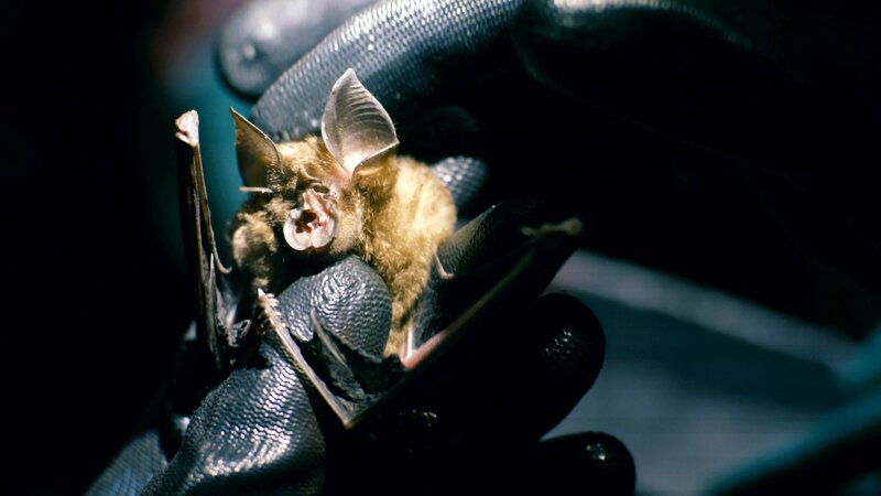 Die Tierärztin Ariane Düx und der Virologe Léonce Kouadio untersuchen den Speichel einer Fledermaus, die im Taï-Wald an der Elfenbeinküste gefangen wurde.Bild: © kwanza