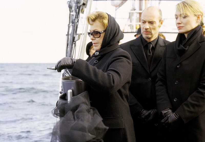 rbb Fernsehen ERBIN MIT HERZ, Deutschland/Österreich 2004, Regie Holger Barthel, am Donnerstag (19.05.11) um 20:15 Uhr. Frauke (Katja Weitzenböck, re.) und Jan Helsing (Simon Licht) beobachten, wie ihre Mutter Helene (Gaby Dohm) die Asche des verstorbenen Alexander ins Meer streut.