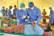 Kaum im Camp in Indonesien angekommen, muss sich die junge Medizinerin Dr. Sophie Heimbach (Alexandra Neldel, l.) einer unvorstellbaren Situation stellen: Verletzte, so weit das Auge reicht, und medizinisch fehlt es am Allernötigsten ...