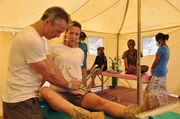 Kaum im Camp angekommen, muss Sophie (Alexandra Neldel, l.) erkennen, dass Dr. Kreusler (Hannes Jaenicke, r.) ein genialer Chirurg ist und trotz seiner schwer nachvollziehbaren Arbeitsweise Unglaubliches für seine Patienten leistet ...