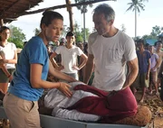 Unter äußerst widrigen Umständen und mit mageren Mitteln bemühen sich Sophie (Alexandra Neldel, l.) und Dr. Kreusler (Hannes Jaenicke, r.) um die im indonesischen Erdbebengebiet teils schwerverletzten Menschen. Da bedroht erneut ein schweres Nachbeben die Region ...