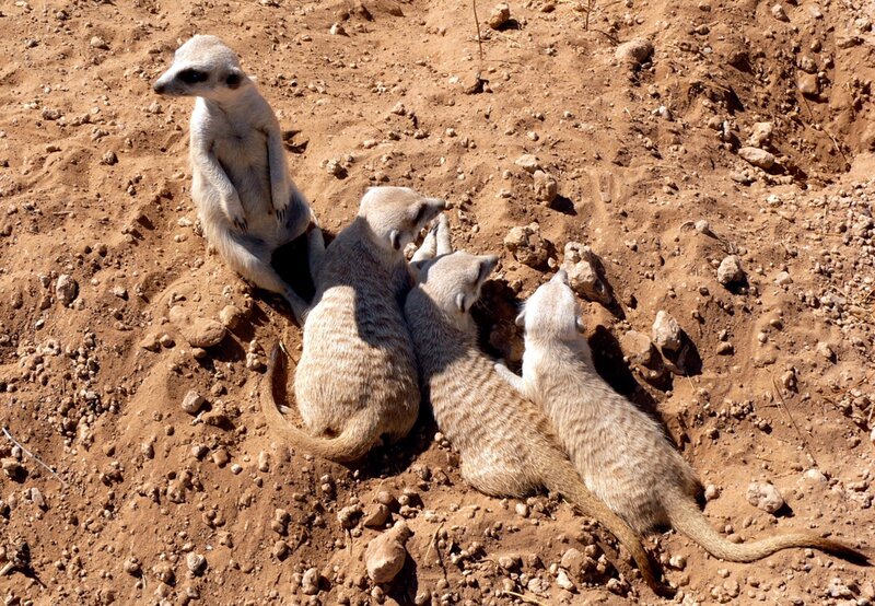 Während die eine Hälfte der Kolonie auf Futtersuche ist oder die Umgebung erkundet, sind die restlichen Erdmännchen mit der Wache beschäftigt. Bei Gefahr, warnen die Wächter die Anderen rechtzeitig.